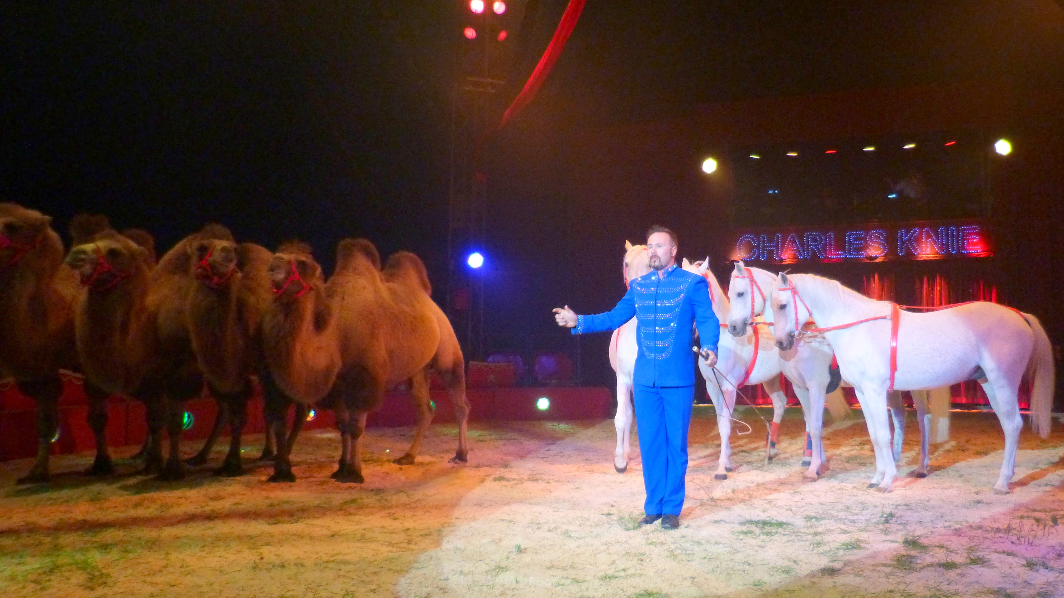 Alle Höhepunkte des Programms vom Zirkus Knie beschreiben kann und muss man nicht. Es geht nichts über das selbst erleben, sehen genießen und staunen. Es ist die pure Faszination im Spiel des Lichtes, und Nebels getragen von live gespielten Melodien und klassischen Zirkuslieden. Das ist Zirkus der Perfektion und so lieben ihn noch immer viele Menschen trotz oder eben wegen der Vielfalt an anderen optischen und akustischen Reizen unserer Zeit. Zwei besonders außergewöhnliche Auftritte sollen aber doch erwähnt werden. Einmal Elvis Errani aus Italien. Zur Zeit der wohl weltbeste Elefantendresseur. Drei indische Elefantendamen lenkt und leitet er allein nur mit seiner Stimme und Gesten. Keine Peitsche, kein Stock. Einfach exzellent und gewaltfrei. Dafür hat Errani 2009 und 2015 jeweils den „Bronzenen Clown" beim Internationalen Circusfestival in Monte Carlo verliehen bekommen. Und dann noch der Auftritt von Tom Dieck Jr. mit seiner gemischten Raubtiergruppe. Er erhielt ebenfalls 2014 einen „Bronzenen Clown"