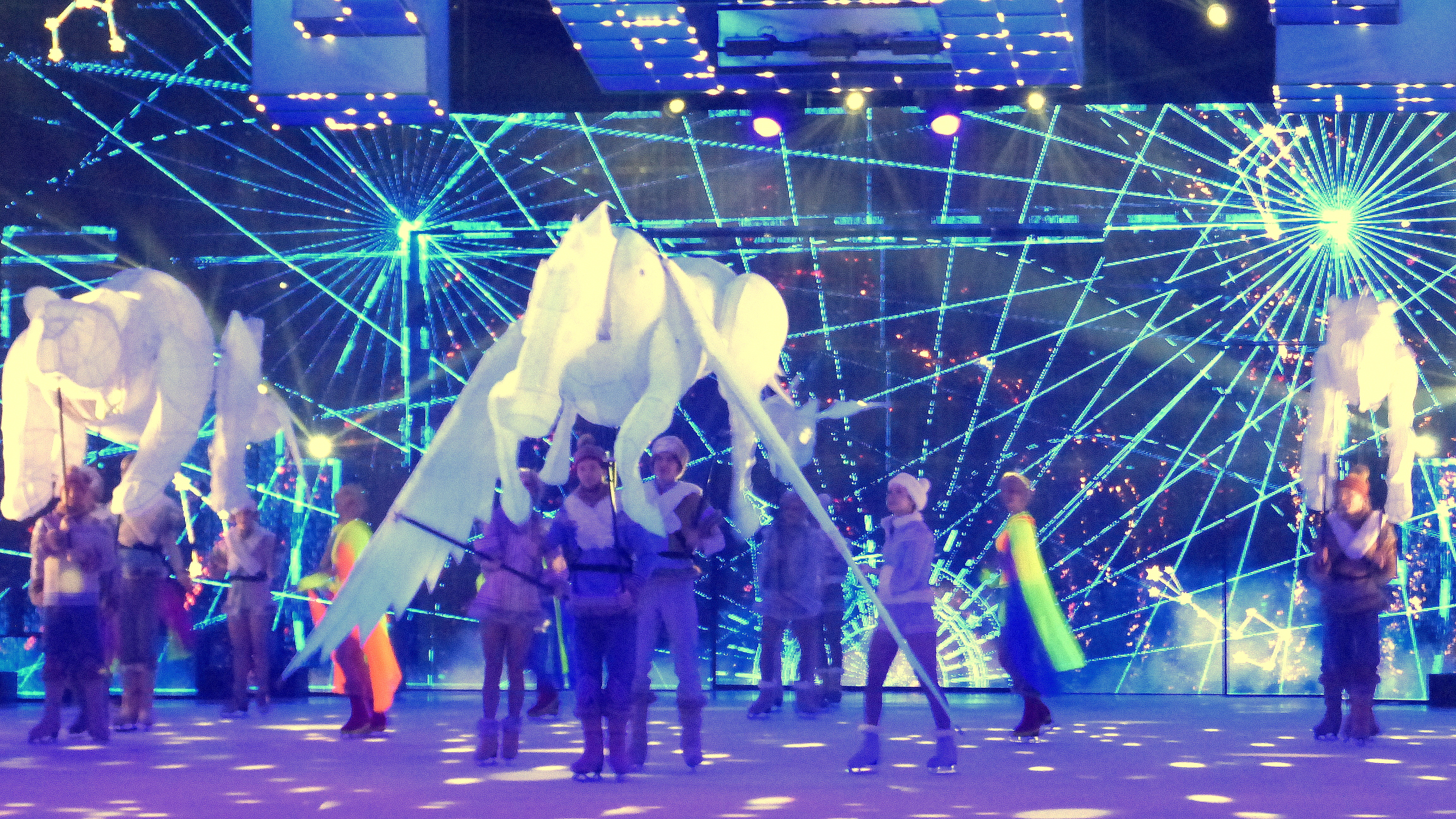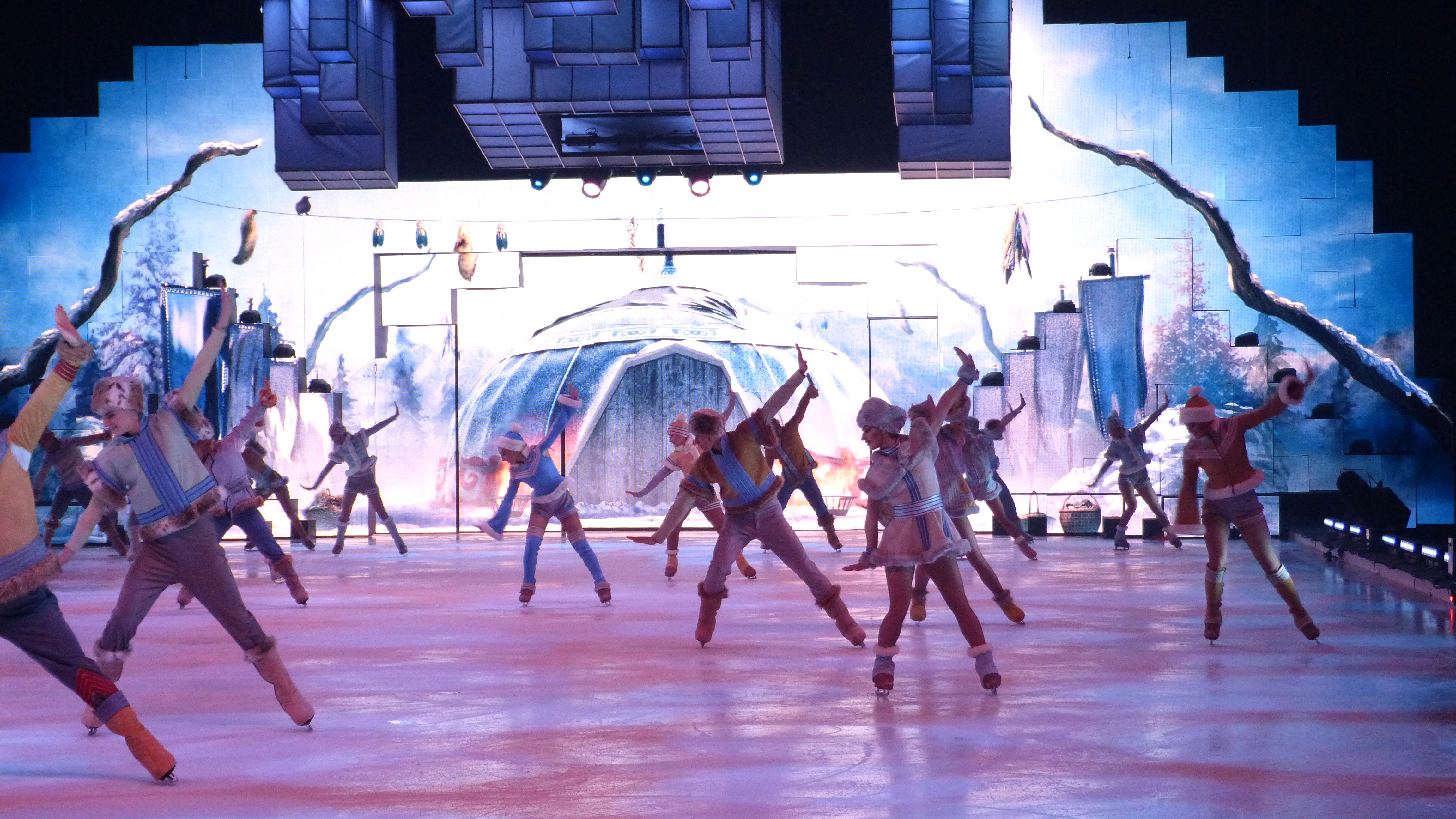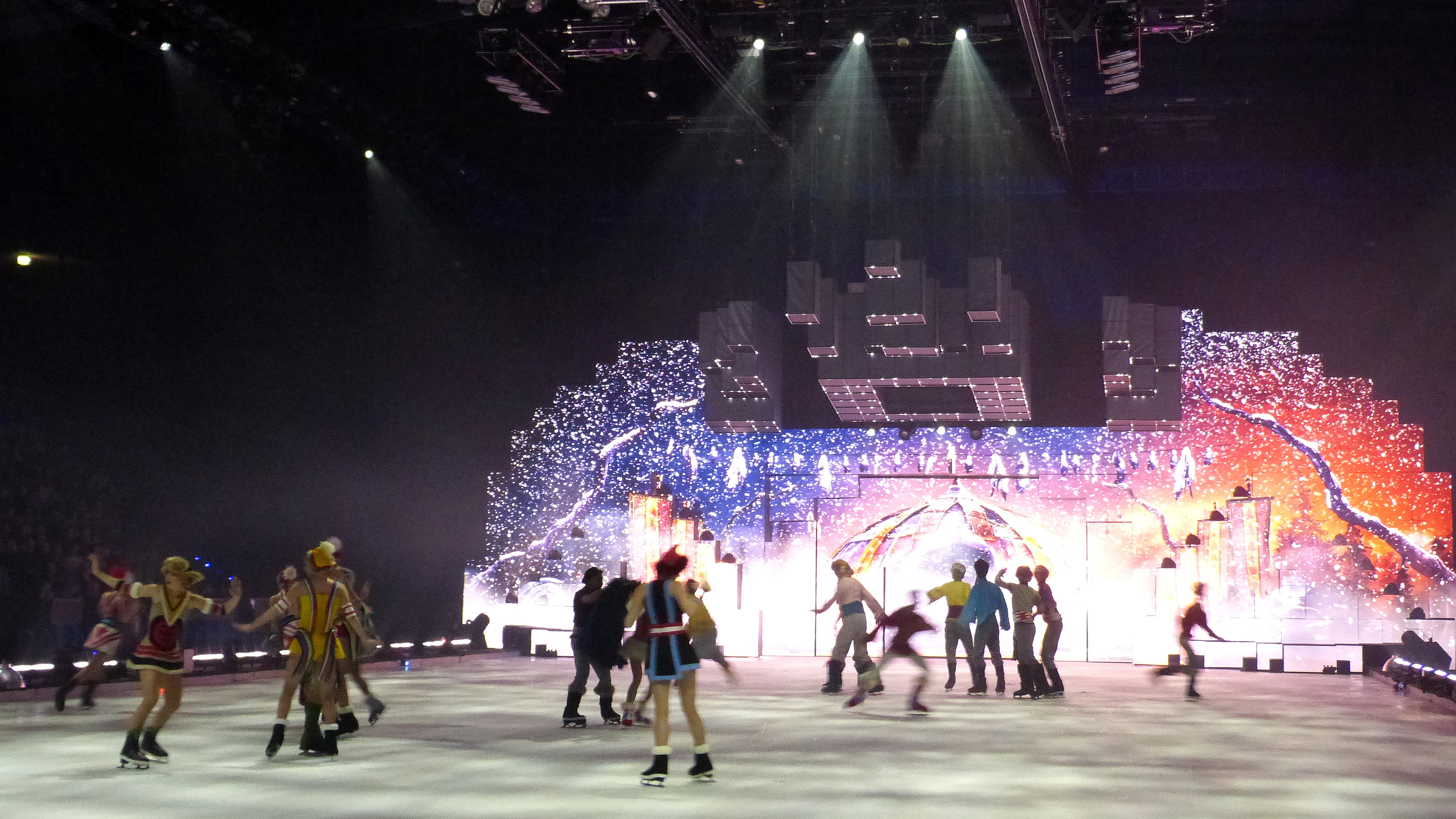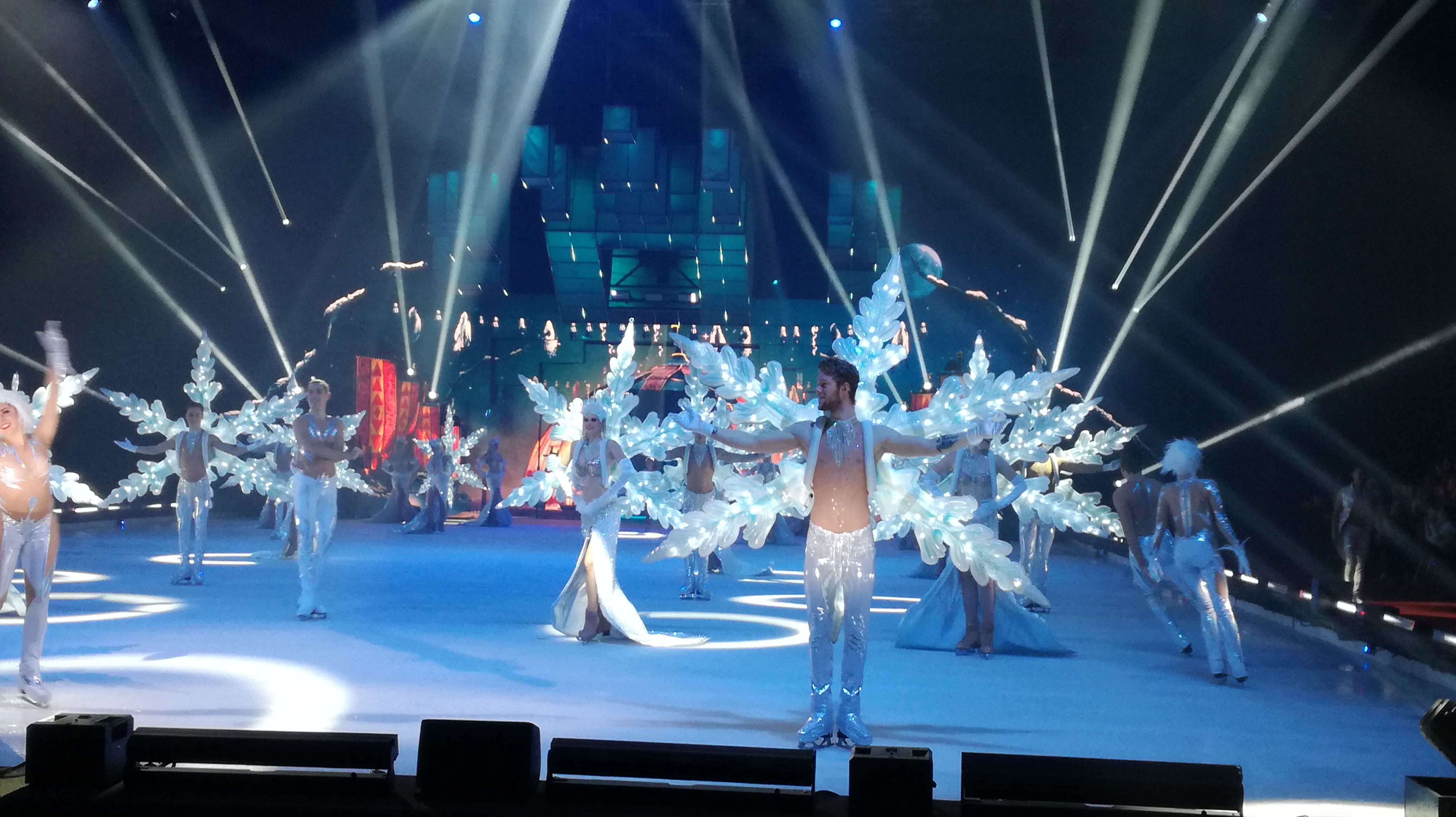 das aufwendig gestaltete Bühnenbild, das der Eisbühne von SUPERNOVA durch facettenreiche Projektionen und innovative Technik eine