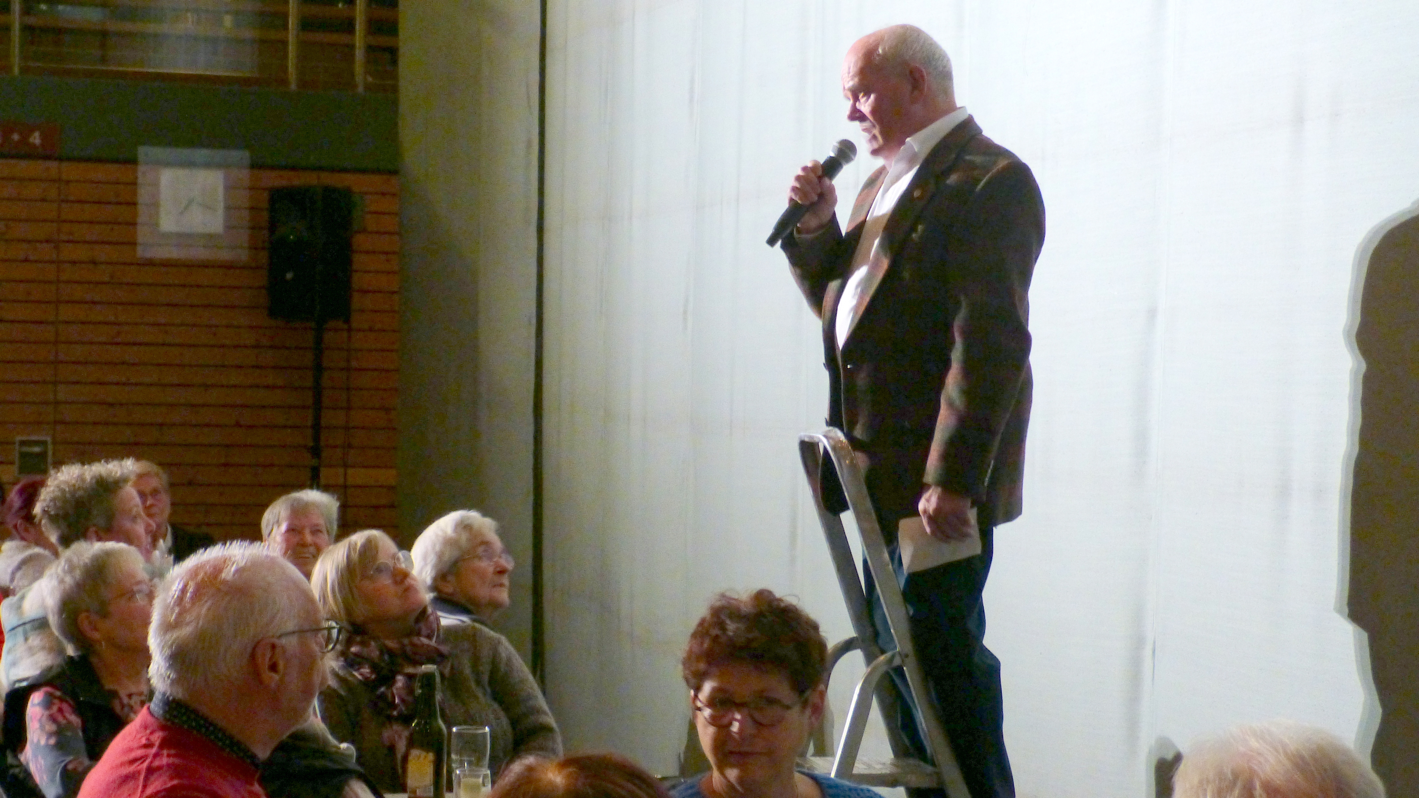 Haushalts-Bockleiter vor der Bühne auf. Was anderes blieb ihm auch nicht